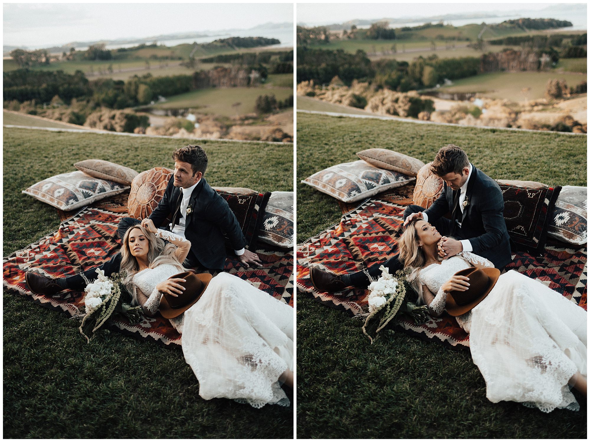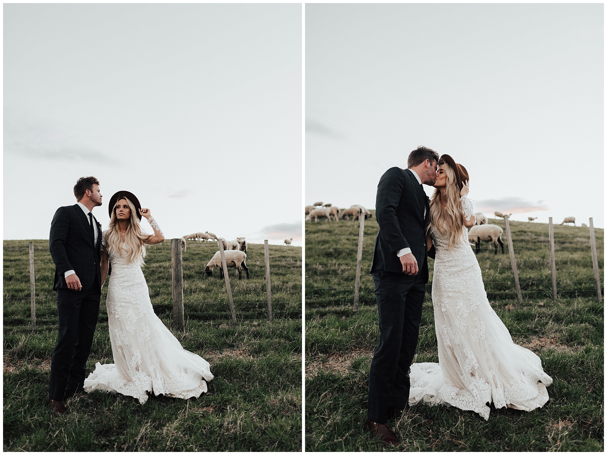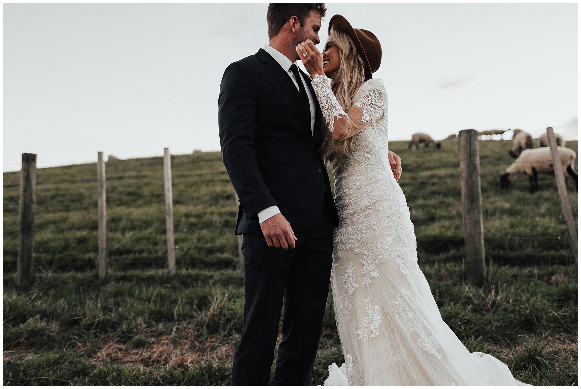 This wedding was a total dream come true! After 33 hours of travel to get to the beautiful country of New Zealand, I finally was able to meet up with my babe Meg and prepare for such a gorgeous wedding. We had the pleasure of working with Rue De Seine while we were there and boy was is an amazing experience. While driving on the wrong side of the road, Meg and I headed out to the countryside to take some beautiful bridals with one of my most favorite gowns ever. With some golden sunshine, rolling green hills, and tons of sheep we were able to capture some stunning images!