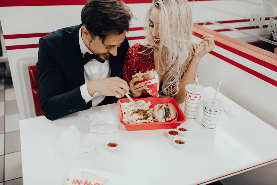 This shoot was spontaneous and out of the blue! Lexi had sent me a picture of this dress and I fell head over heels. We decided to put a last minute shoot together and it has become one of my favorite shoots ever. We ended up starting a little later than we wanted and kind of ran out of time… but that’s okay, we decided to end the night at In-N-Out! We got a lot of weird looks but we didn’t care because the only thing better than out of the box ideas is out of the box ideas… animal style!